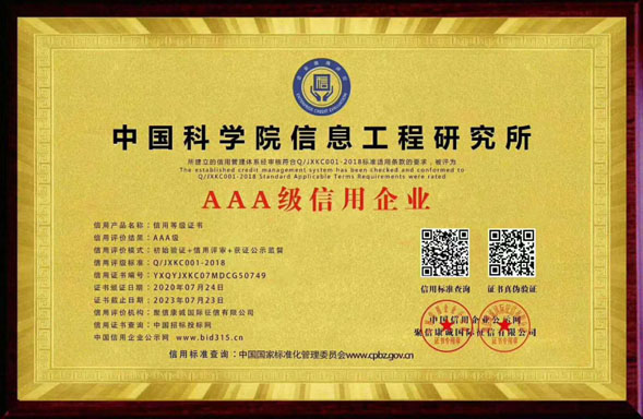 AAA企業信用評級、體系認證、榮譽證書提供 電話:400 880 5176 |